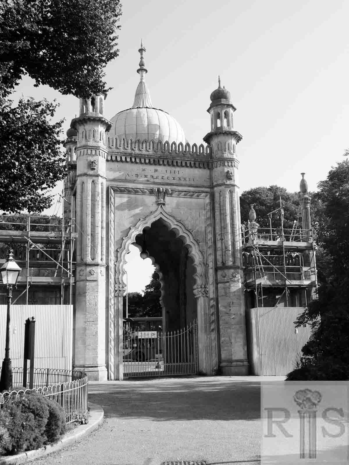 2021: The Indian gate which replaced the nineteenth century South Gate. The inscription on the gateway reads ‘This gateway is the gift of India in commemoration of her sons who – stricken in the Great War – were tended in the Pavilion in 1914 and 1915. Dedicated to the use of the inhabitants of the Brighton, B.N. Southall, Mayor.’ (Photographer: Ron Fitton)