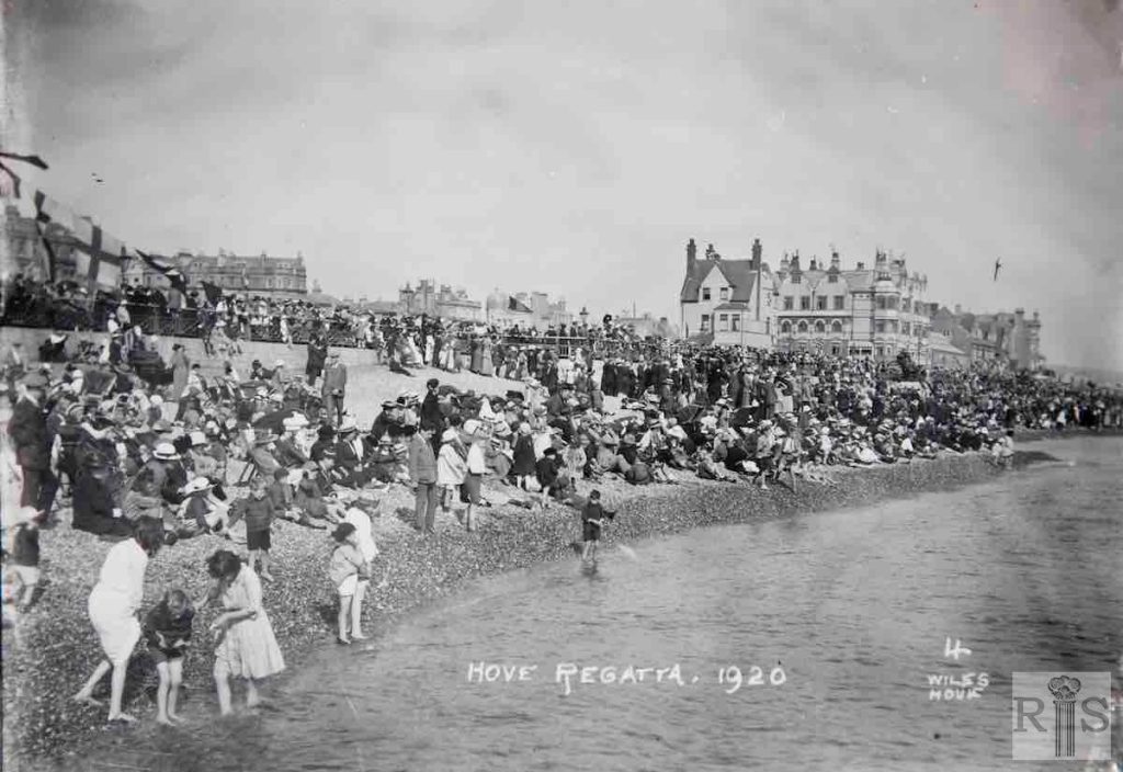 2018: Hove regattas started in 1876 and ended in the early 1920s. The event was extremely popular, with sailing and rowing races and other entertainments on both land and sea. In the background of the James Gray picture St Aubyn’s Mansions is one of the few recognisable landmarks standing today.