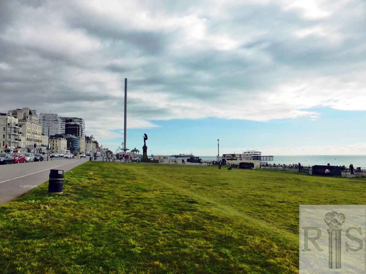 The 2018 view includes two later landmarks: the 1912 Peace Statue, or Angel of Peace, and the 2016 British Airways i360 viewing tower. The wooden seating along the lawn edge has long gone, replaced by a lone litter bin. The other images mentioned by James Gray can be found on the Kingsway (1A) page (jgc_11_157) and Kingsway (1) page (jgc_11_159).  (Photographer: Alison Minns)