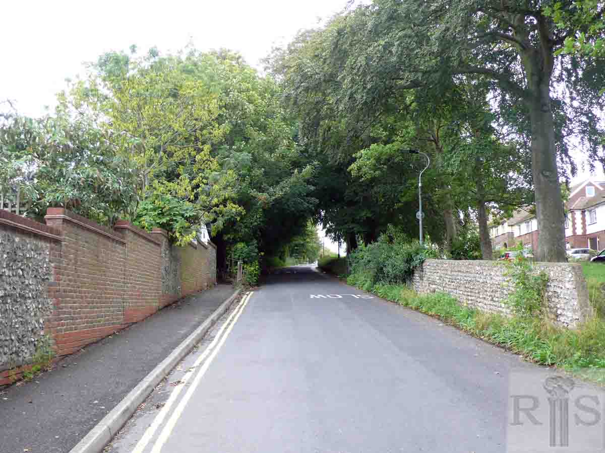 2018: The Drove Road was so named as it was the road by which livestock was driven from Southwick and the west, past the north side of Portslade old village, over the hill toward Hangleton, and finally to the Brighton abattoir. Judging by the topography, the picture appears to have been taken from where Drove Road now becomes Foredown Road. (Photographer: Jeremy Knight)