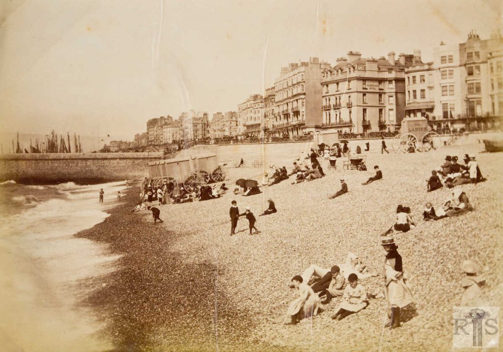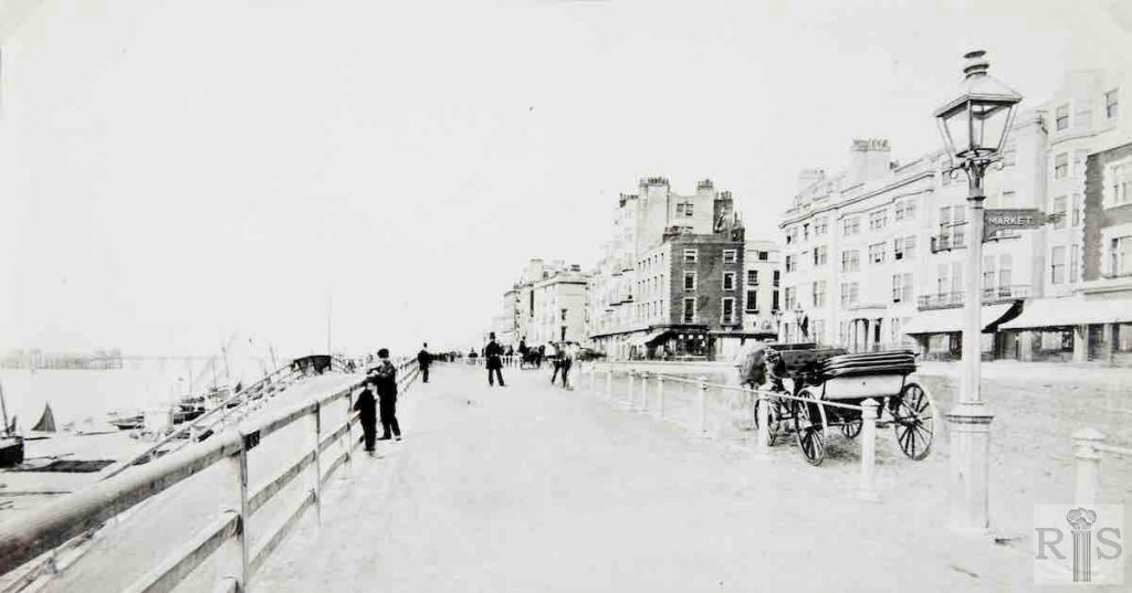 2020: This fine late Victorian image shows the beach and hotels on Kings Road between Middle Street and East Street. In the far distance is Markwell’s Hotel and behind it, Queens Hotel, before their merger in 1908.