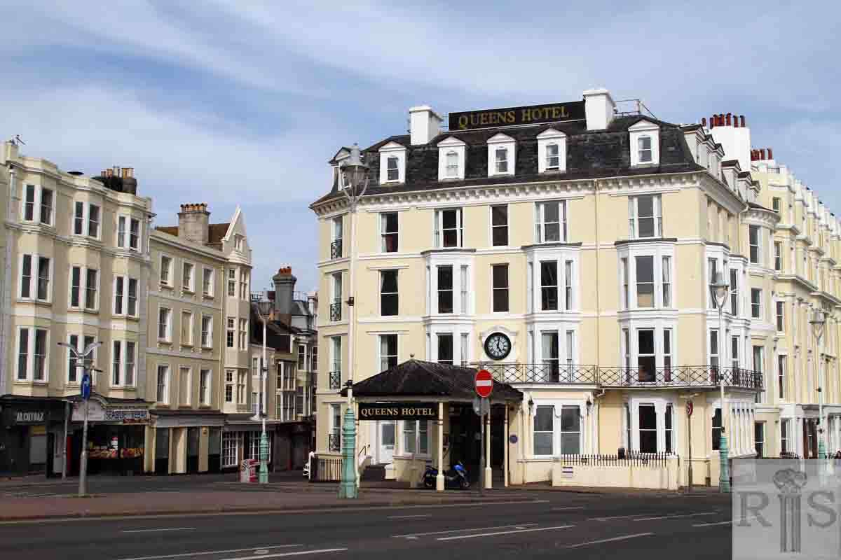 2020: Queens Hotel is not much changed externally. Behind the lamp post are more surviving buildings but the pre-1914 buildings further west have now been replaced by Jurys Inn Brighton Waterfront. (Photographer: David Sears)