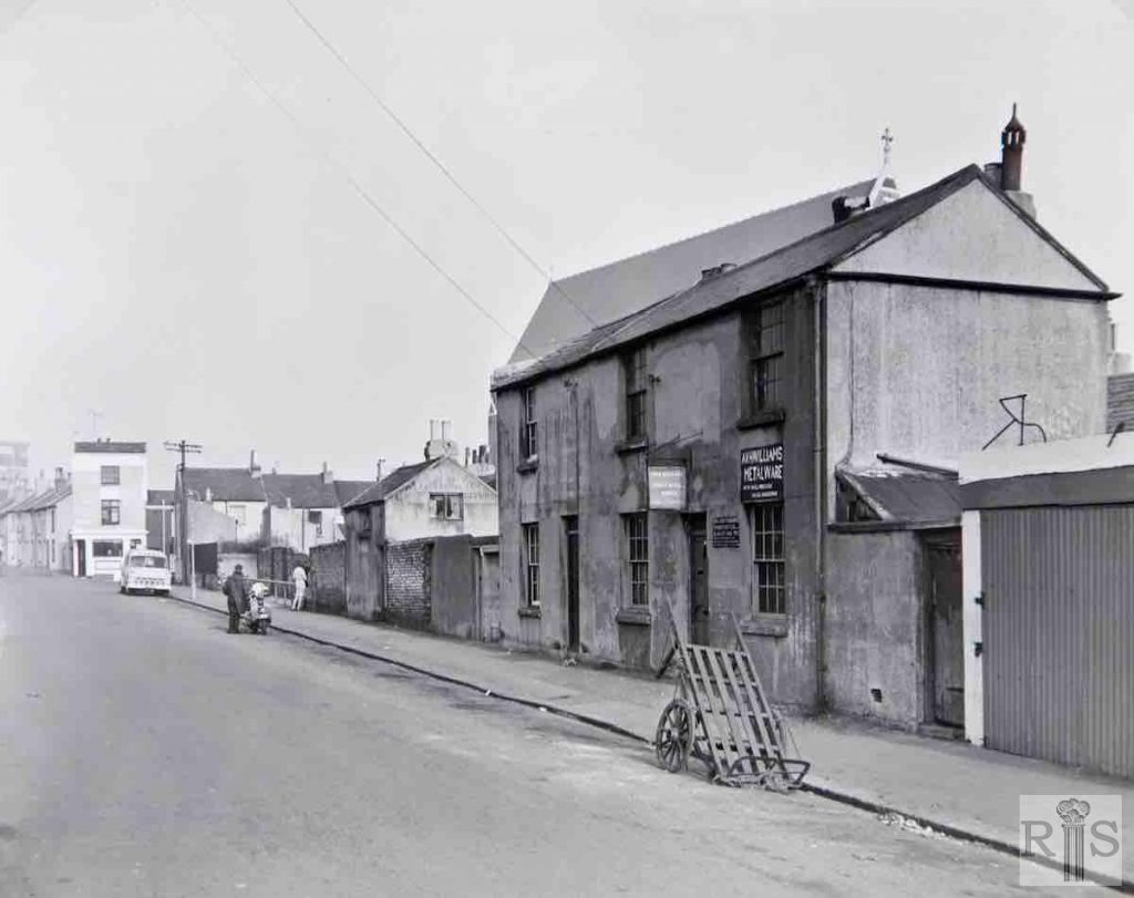 James Gray: South of New York Street (seen in distance) was Fleet Street, or rather what was left of it. Built at the same period, the early 1850s, originally it contained 26 small houses, 14 on the west and 12 on the east side of the street. In 1905 they all went with the exception of these two, photographed on 12 February 1967. At the time of this clearance the roadway was widened, this being the reason for the removal of houses on the east side many of which had basements. The two remaining houses have lingered on for more than 60 years but will go with the others in the redevelopment scheme. Fleet Street was one of many streets in this area which were named after City of London streets. jgc_25_267
