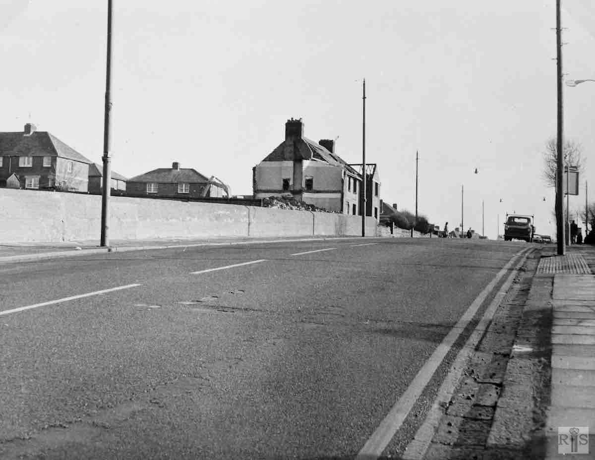 James Gray: Four photographs [jgc_16_150, 151, 152 and 153], taken in 1976 at the time of the widening of Old Shoreham Road from Olive Road to Southwick. At the junction with Hangleton Road this involved the removal of the four houses Nos 345-351, and the grassing over of the old pit, which, many years ago, had been a source of water. jgc_16_150 and jgc_16_151